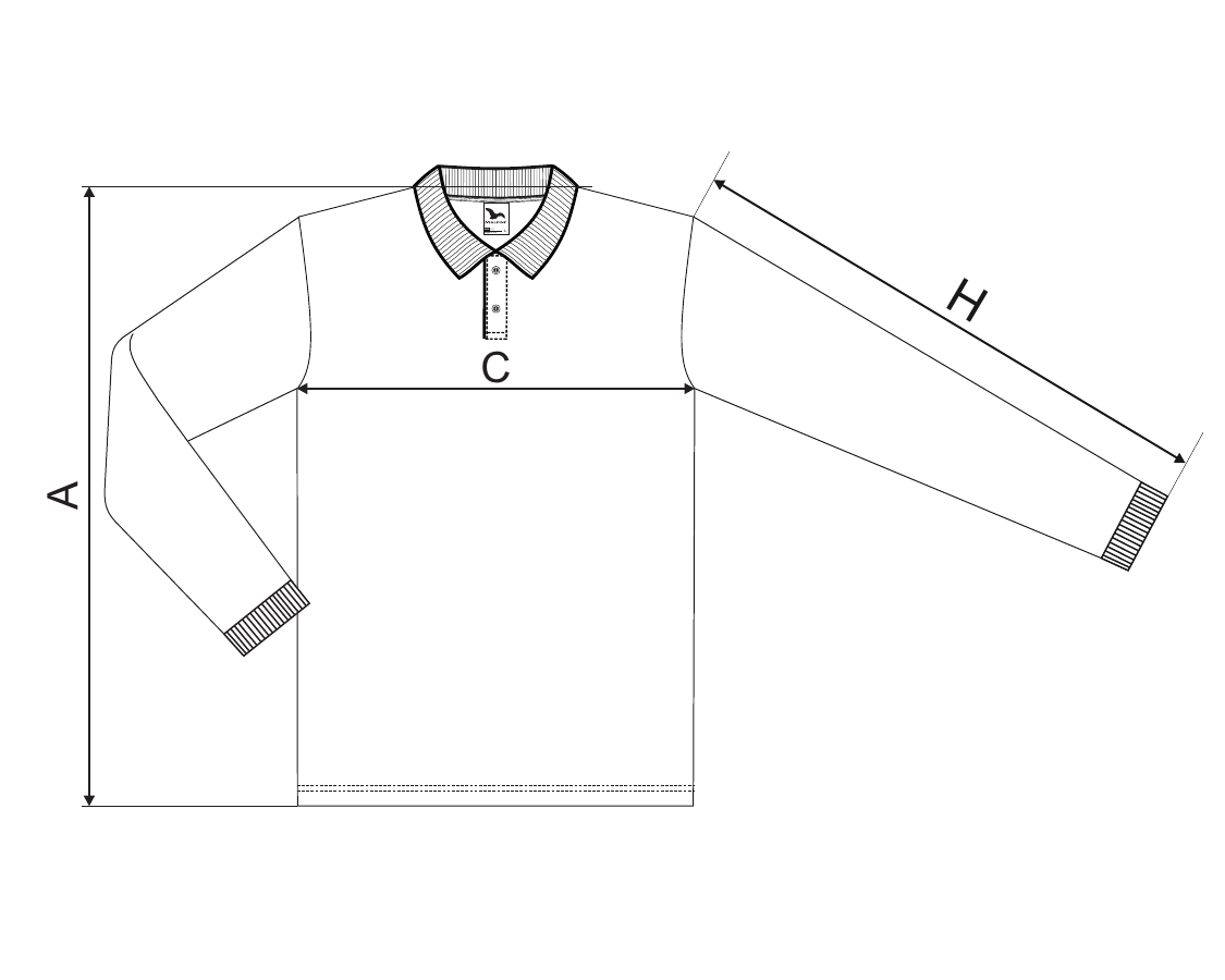 oldalvarrással, 1:1 bordás kötésű gallérral és ujjvégekkel, gombolópánt 2 gombbal a szövet színében, belső nyakkivágás szalaggal díszítve, vállaknál rögzítő varrással, hosszú ujjú mandzsettaval